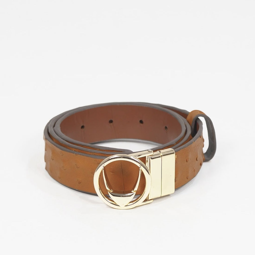 Meet Elodie, handcrafted from genuine ostrich leather, one of the most exotic and sought-after leathers in the world. With its reversible design, this belt brings two refined looks in one, making it a bold yet timeless statement in your wardrobe.