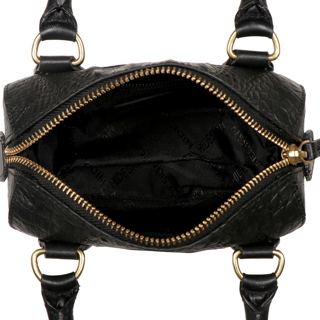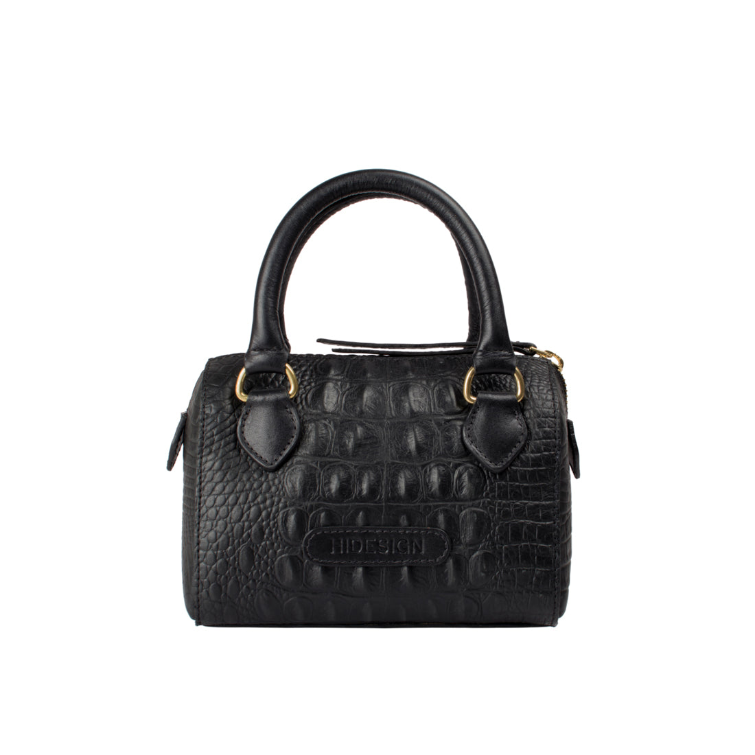 Weird text in description-Handcrafted in vegetable tanned leather with gorgeous croco embossing, Hidesign’s Suzie Mini bag is perfectly primed for organising your essentials. Composed of three inner compartments, signature printed logo; this compact bag features twin top handles and a cross body strap. A timeless investment that will lend a luxurious finish to any outfit.