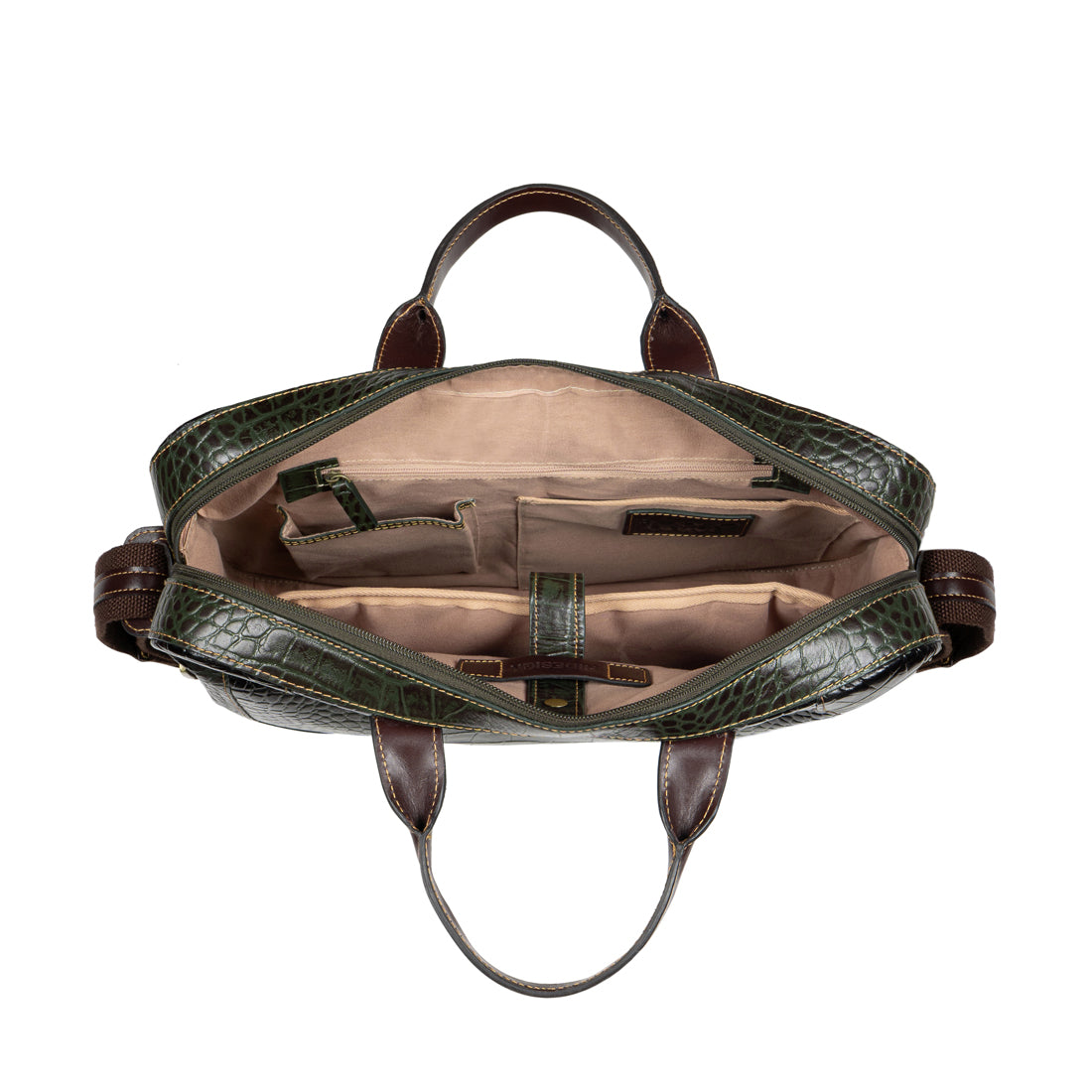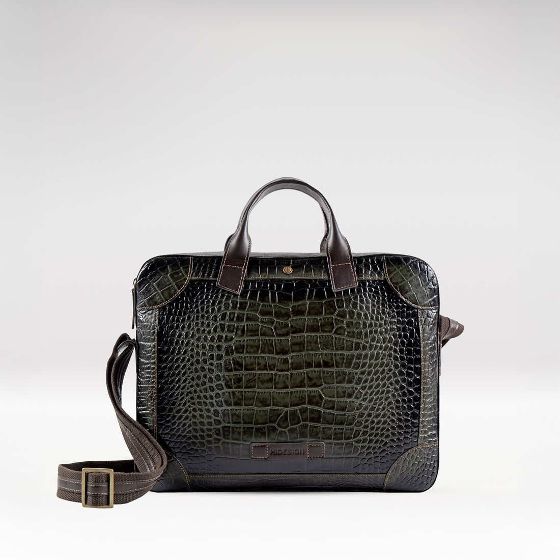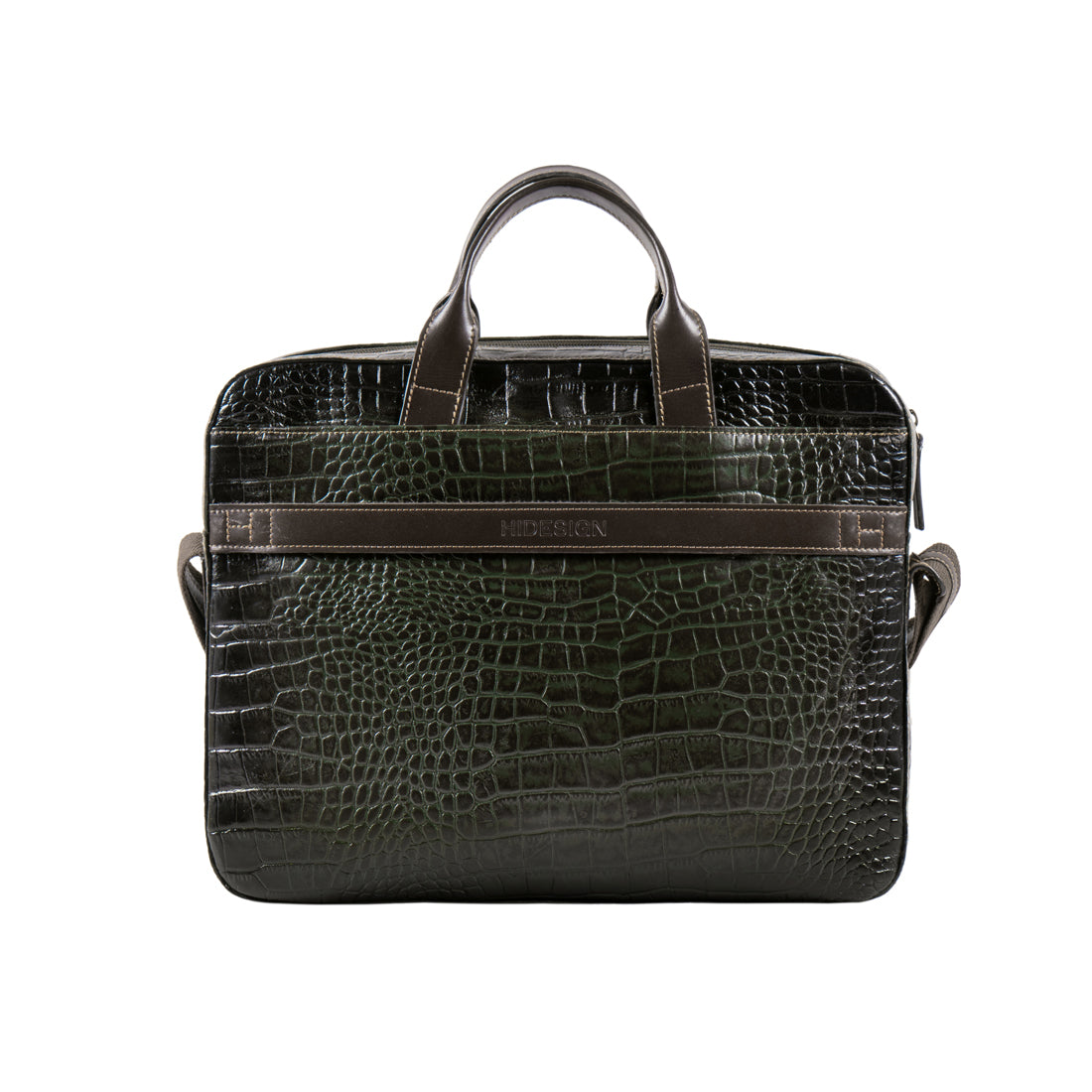 Structured men’s briefcase crafted in premium croco leather with contrast stitching for a refined, professional look.