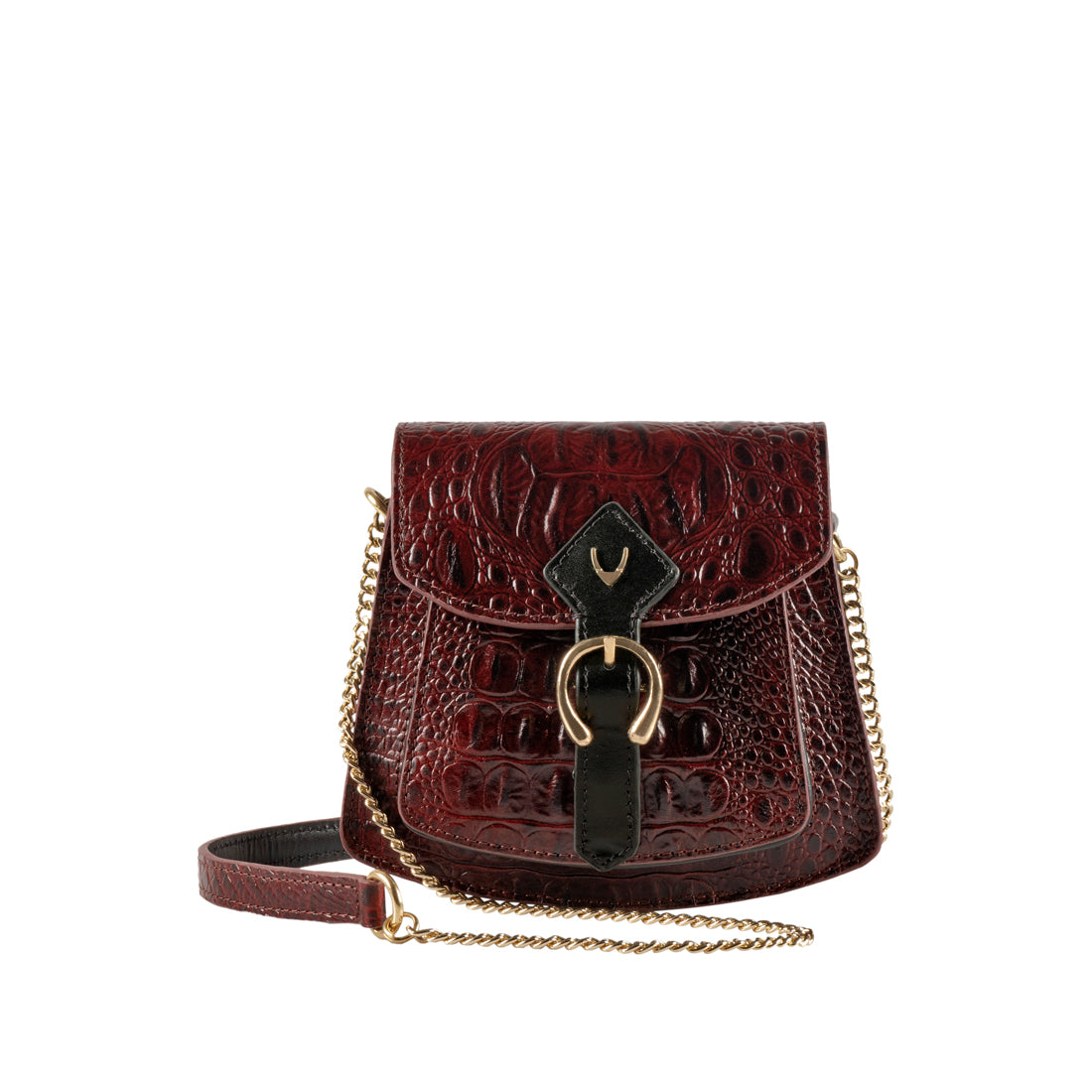 Non-detachable, non-adjustable chain strap with padded leather top