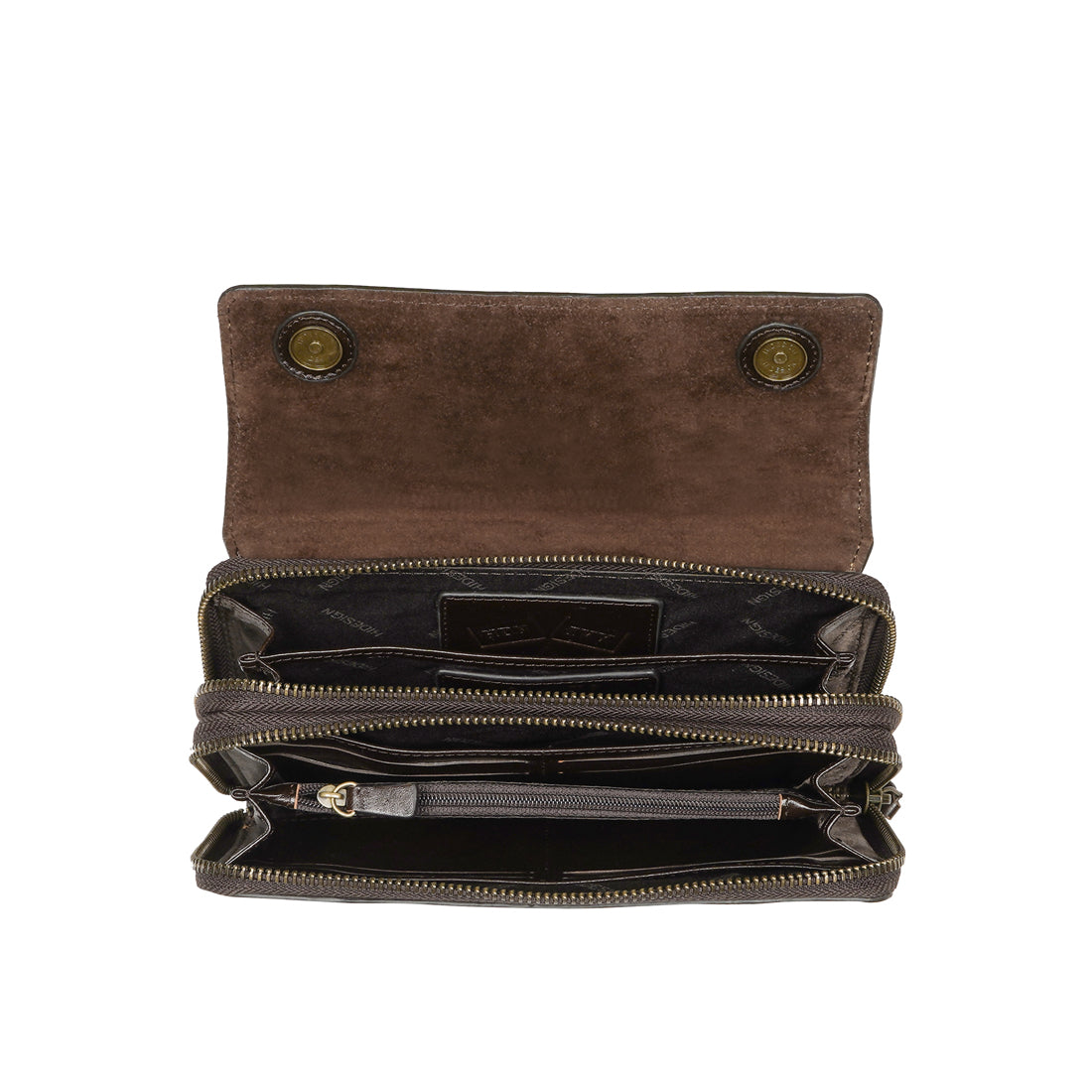 Dual zip compartments allow for easy organisation of cash, cards, and small valuables.