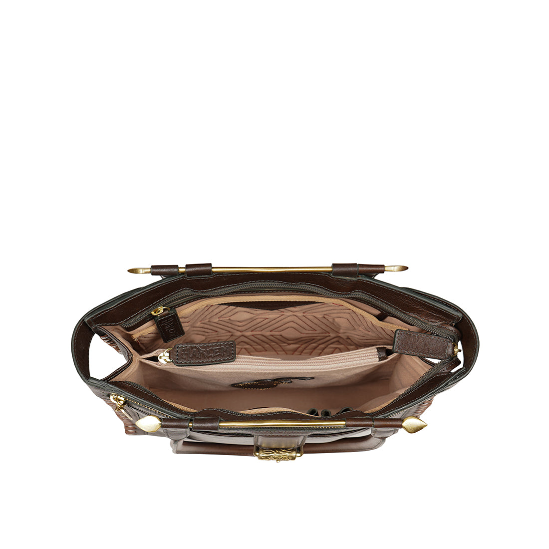 Harlem - the center for all things art, music, racial pride, and a beacon of Black culture. Inspired by that bold spirit, Hidesign brings you Gracie 01 from its Harlem collection. Handcrafted from real vegetable tanned leather, this shoulder bag features a unique woven leather detail and sandcasted brass accents, including a guitar shaped brass buckle, studded star rivets and a signature sandcasted “H” Harlem fitting that ties it all back to the roots of the collection.