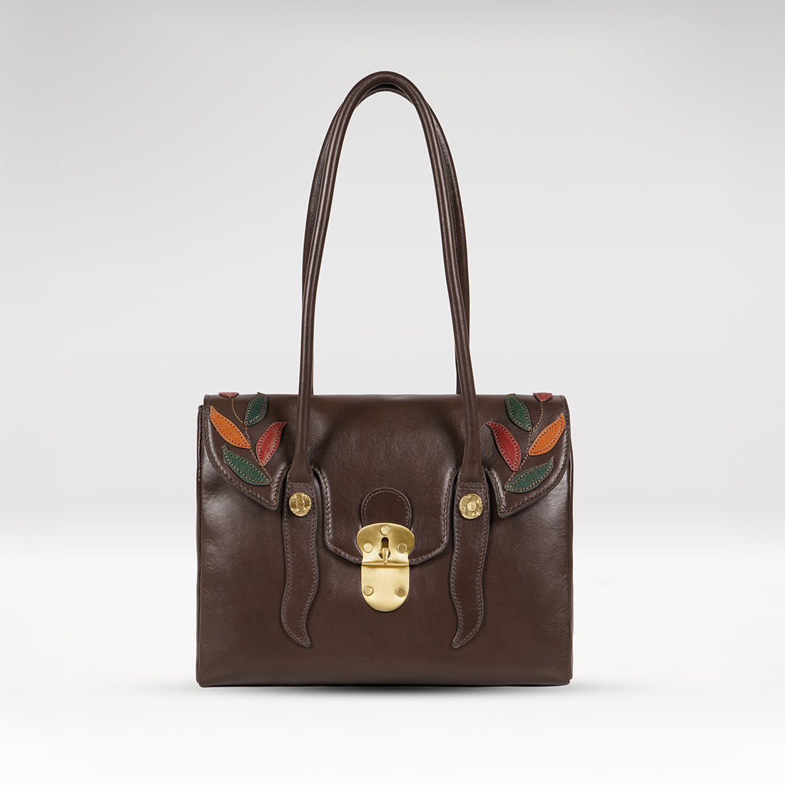 Forest 02 from Hidesign's East India collection is a tote that brings together natural materials and thoughtful design. Handcrafted in vegetable tanned leather using seeds and barks, it reflects the depth and character of slow, traditional craft. A solid brass lock and brass coin fittings add a refined touch, while the back slip pocket offers easy access on the go. Finished with a leaf-inspired panel, every detail is rooted in nature.