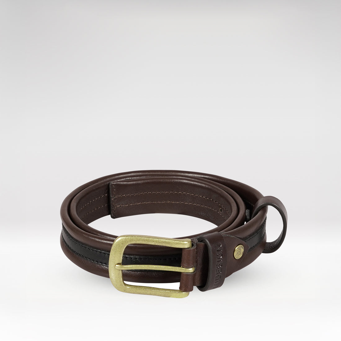 Iva is a men’s belt, handcrafted from vegetable tanned leather and finished with a sandcasted antique brass buckle. The contrast leather panel at the centre adds a refined edge, bringing just the right amount of character to your everyday look.