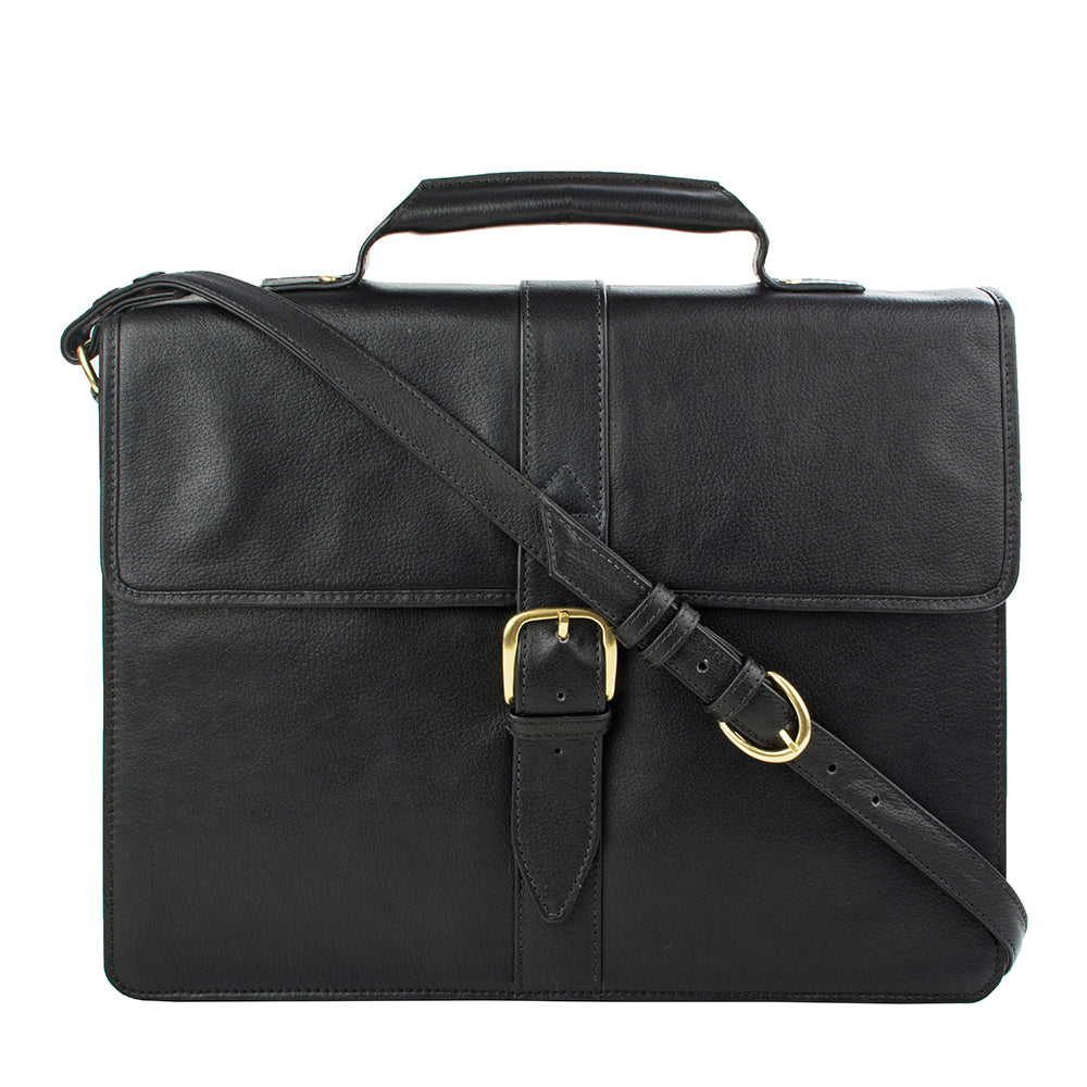 The Bennett 1 Buckle flap over briefcase is handcrafted with vegetable tanned leather that ages gracefully to form a beautiful patina. It features a buckle fastening, top carry handle and adjustable shoulder strap. The interior of the briefcase comes with spacious multiple compartment and pockets. This is a stylish yet practical leather briefcase.