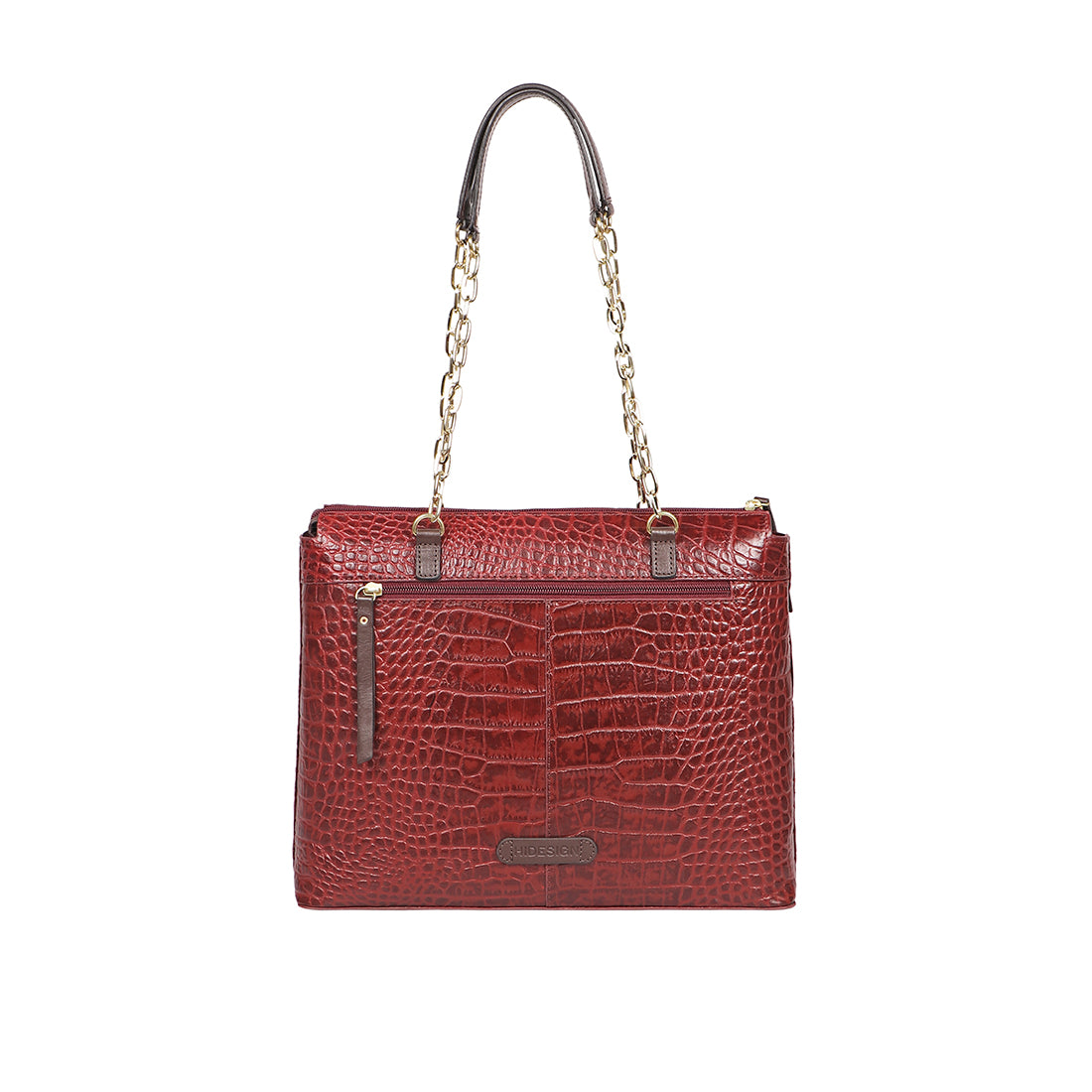 This smart Eliza bag makes for an eye catching addition to your closet. This shoulder bag by Hidesign is handcrafted with vegetable tanned leather and comes with a metal chain strap. The ostrich embossed leather, brass buckle and logo plate adds class and is great to go from day to night.