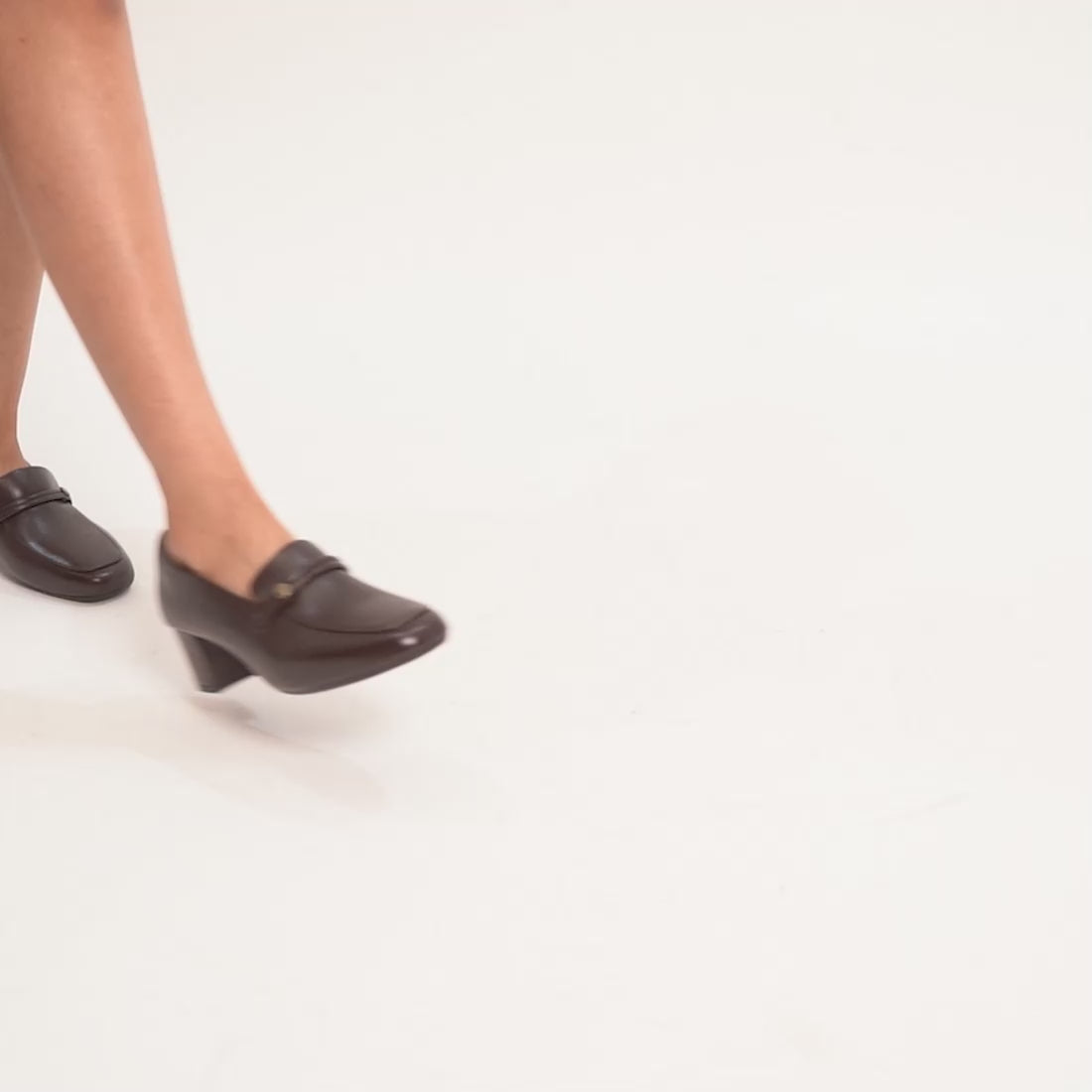 This handcrafted loafer is elevated with a sculpted 2-inch block heel, intricate hand-stitched detailing in waxed thread, and our signature solid brass rivet.