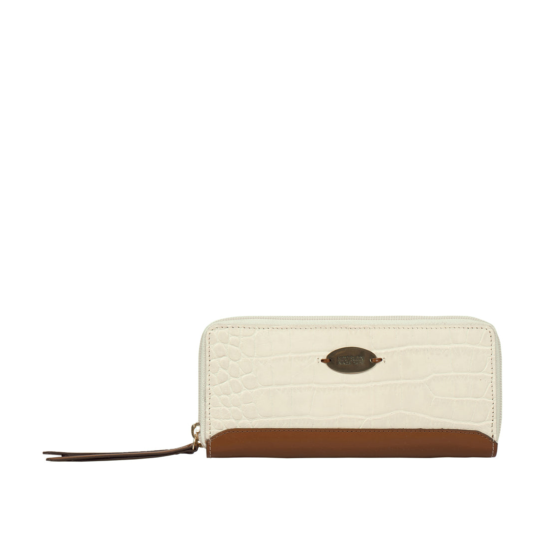 INSIDE: 2 Main zip compartment, 4 money compartment, 2 slip pocket, 8 cc slots, 1 middle zip pocket.