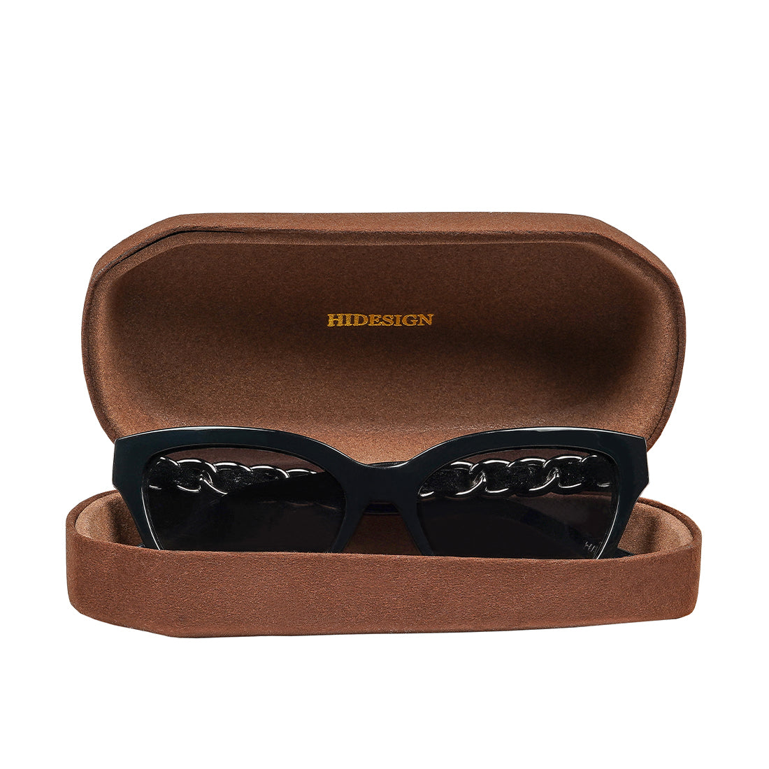 What if your sunglasses didn’t just match your mood but set it? With its sharp cat-eye frame, Aegina brings a confident edge to your style. The acetate frame and tips, crafted from naturally derived wood pulp, offer a smooth, polished finish while staying true to Hidesign’s commitment to sustainability. But it’s the temples that catch the spotlight, a metal chain wrapped in Hidesign’s real vegetable tanned leather, finished with acetate tips for a look that’s both edgy and elegant. Slip on Aegina,and let your eyewear do the talking.