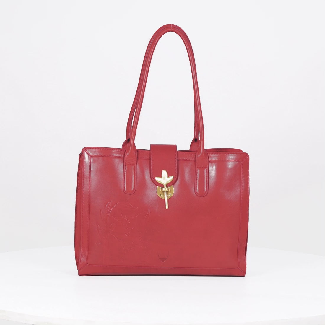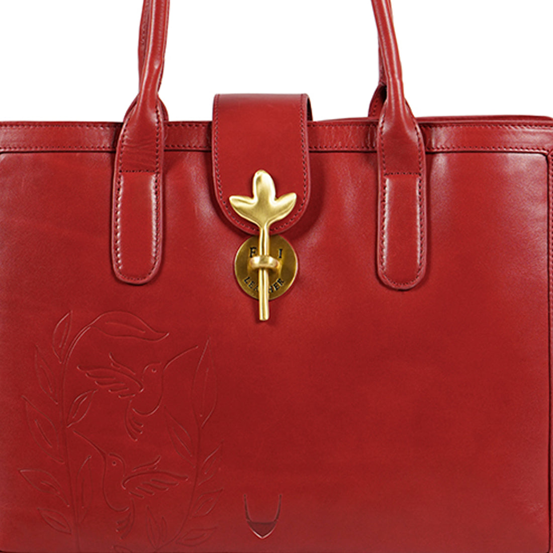 Enchanted 02, a tote bag that is thoughtfully handcrafted for those who appreciate the little details. Made in vegetable tanned leather using natural seeds and barks, it's part of Hidesign's East India Collection. A solid brass lock adds a bold finish, while the bird and leaf deboss details bring in a quiet touch of nature. It fits a 15" laptop, has a back zip pocket, a trolley sleeve for easy travel, and carries the East India tree mark as a reminder of where it all began.