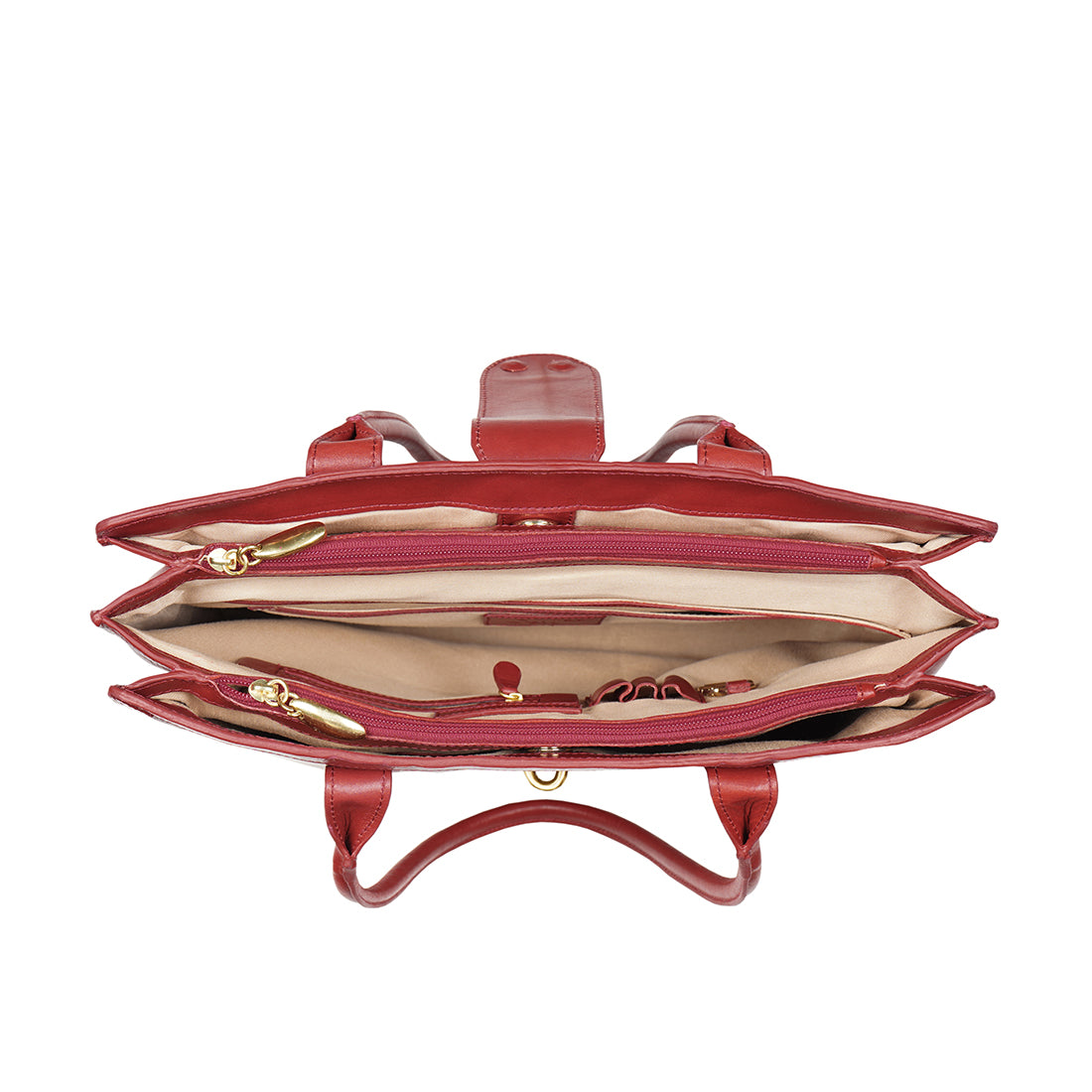 INSIDE: 3 Main compartments, 1 Zip pocket, 2 Zip compartments, 7 Slip pockets, 3 Pen holders, 1 Key holder, 4 cc slots, 1 Moblie pocket.