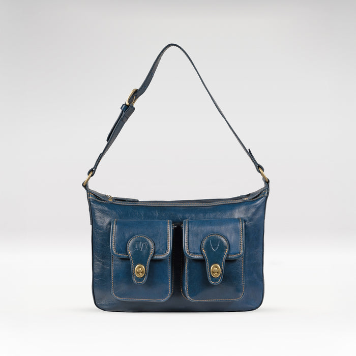 Hope by Hidesign is a perfect mix of style and utility. Handcrafted with East India vegetable tanned leather this satchel bag needs minimal styling and stands out with intricate thong detail on the edges, embossed logo , unique sandcast brass hardware and our signature East India branding etched on a brass plate.