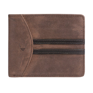 A fashionable mens wallet with stitch work and trim panels along with the iconic horn logo in emboss.