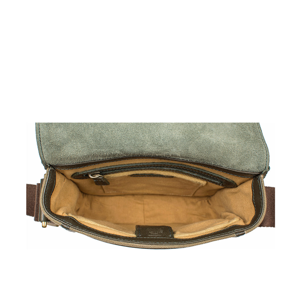 Glossy oil rich leather with an emboss tab detailing give this bag an earthy feel.