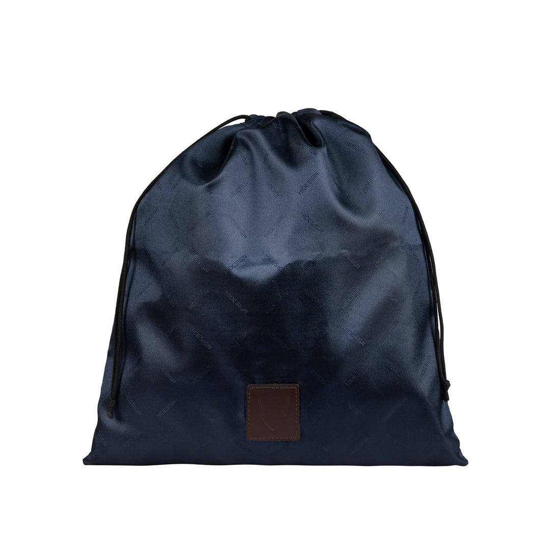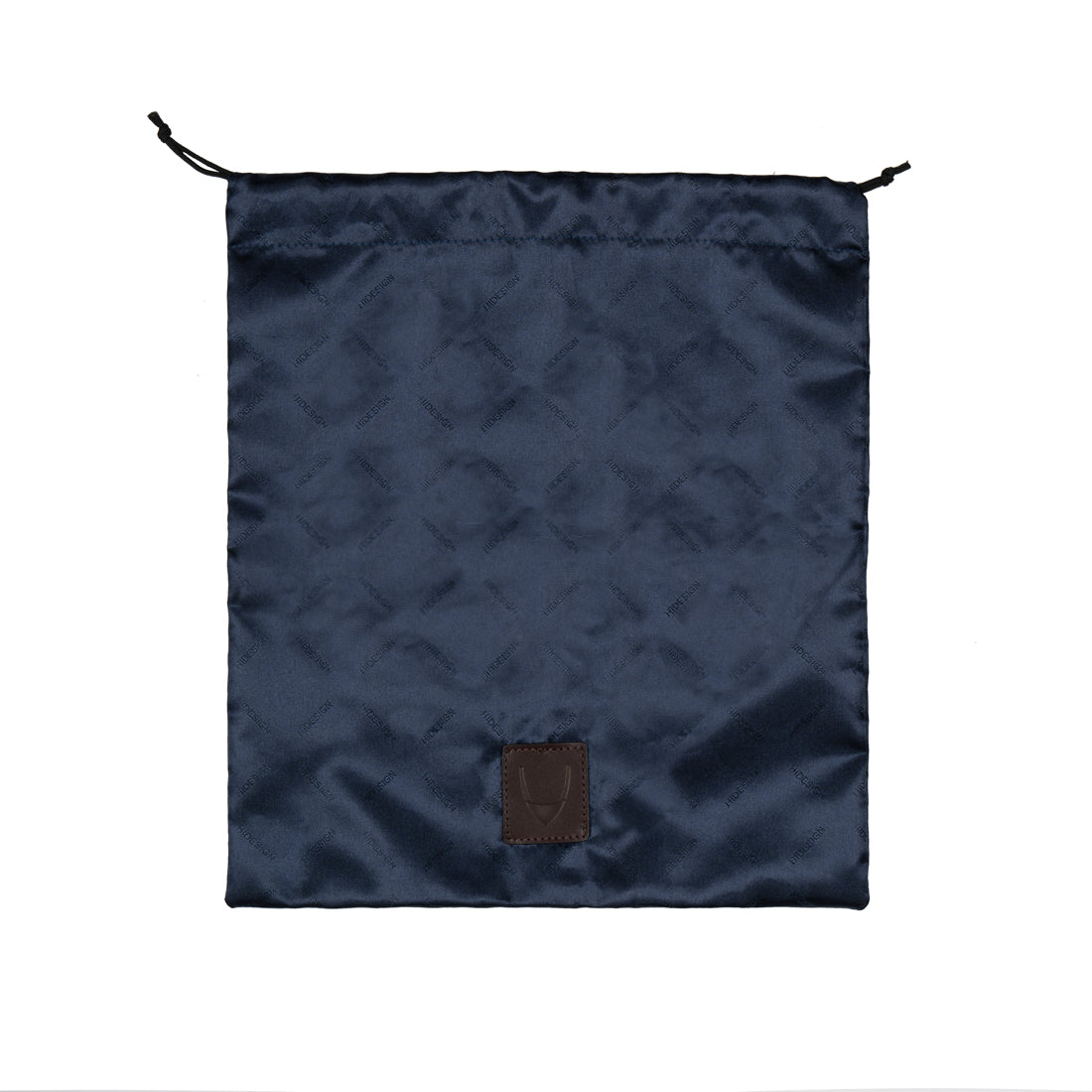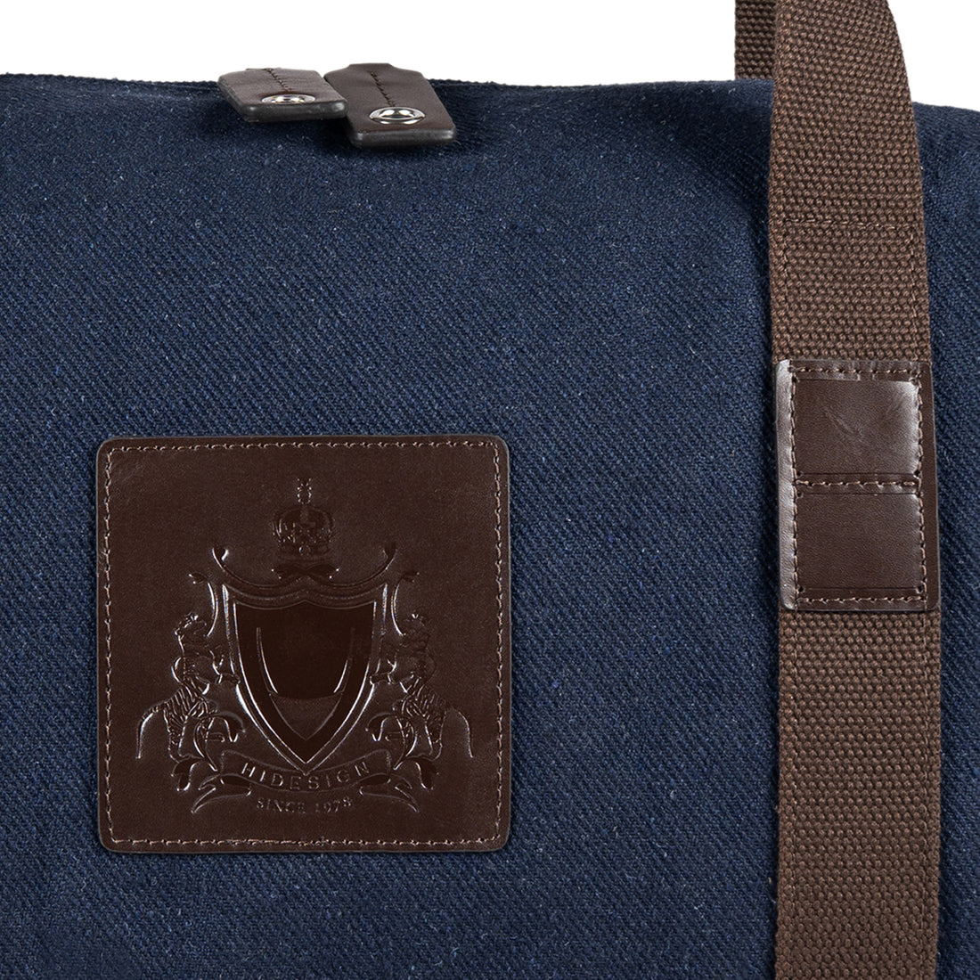 Rear leather trolley insert with large HDN deboss for hands-free airport travel.