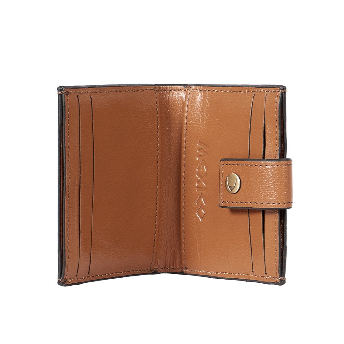 Craft meets convenience in the Churro W1 card holder. Handcrafted in glazed goat leather, it features a brogue-inspired design frame with a sprayed finish that adds a distinct artisanal touch. The press-button tab opens to reveal card slots and slip pockets, keeping essentials neatly organised. Compact and easy to carry, it slips effortlessly into your pocket or bag, bringing both function and style to everyday moments.