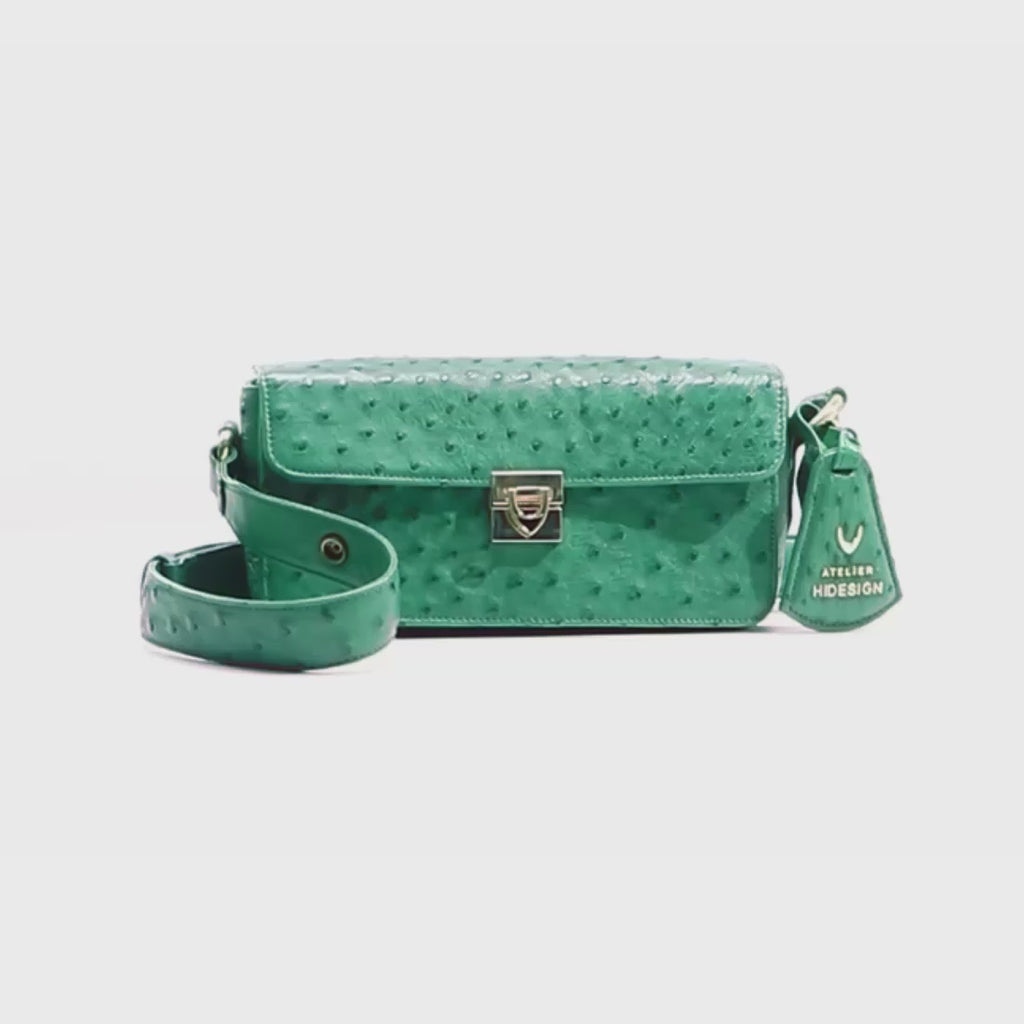 Be the light of the party with our very own Eda baugette bag by Hidesign.Handcrafted with superior quality real ostrich leather,this bag features a flap opening with a statement buckle detail.Th...