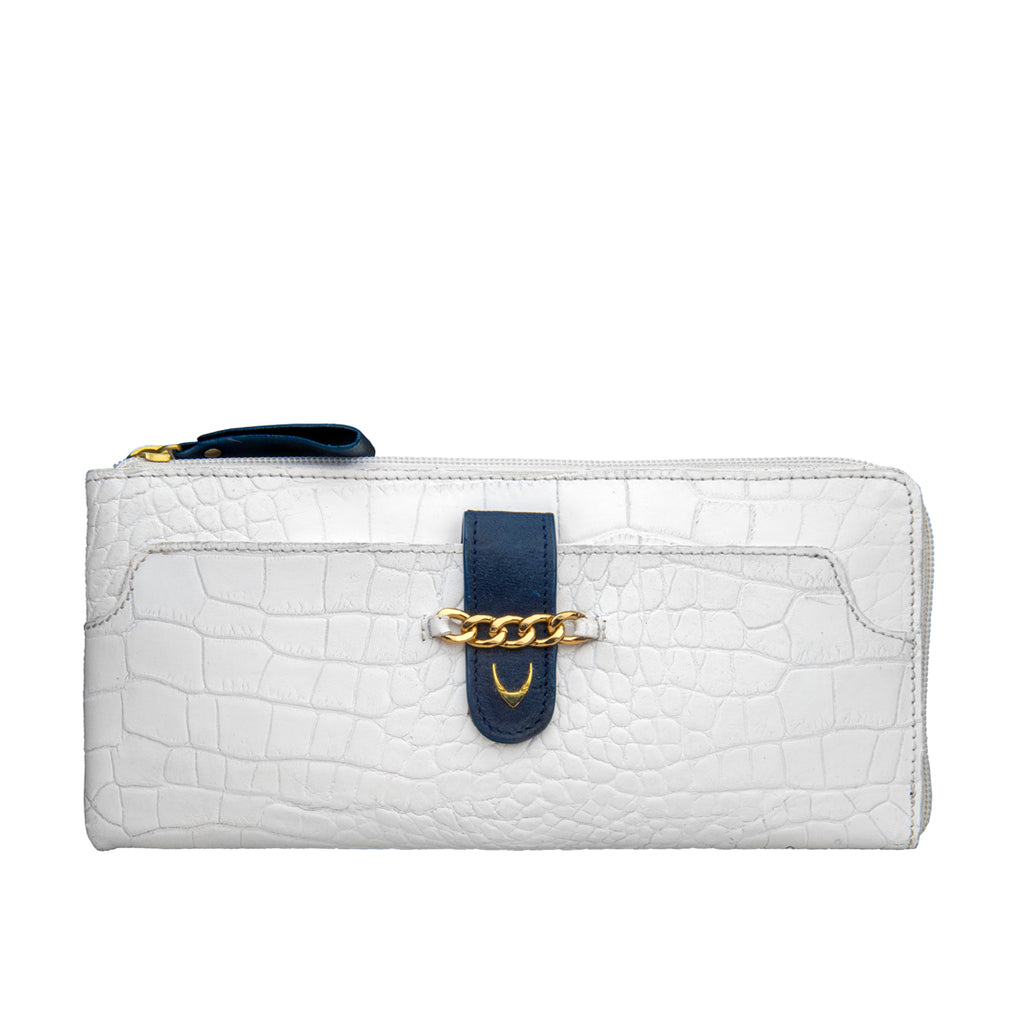 This gorgeous croco embossed leather wallet comes with a metal chain around the tab. Slip it in your bag or carry it as it is and be sure to get noticed.