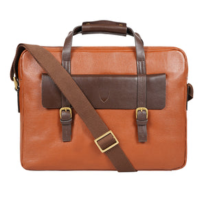 Ronaldo is a classic top handle briefcase bag by Hidesign handcrafted in vegetable tanned leather. It comes with an adjustable shoulder strap and can also be worn as a cross body bag. Elegant details of solid brass hardware buckles, front pocket and embossed brand logo makes it ideal for daily use.