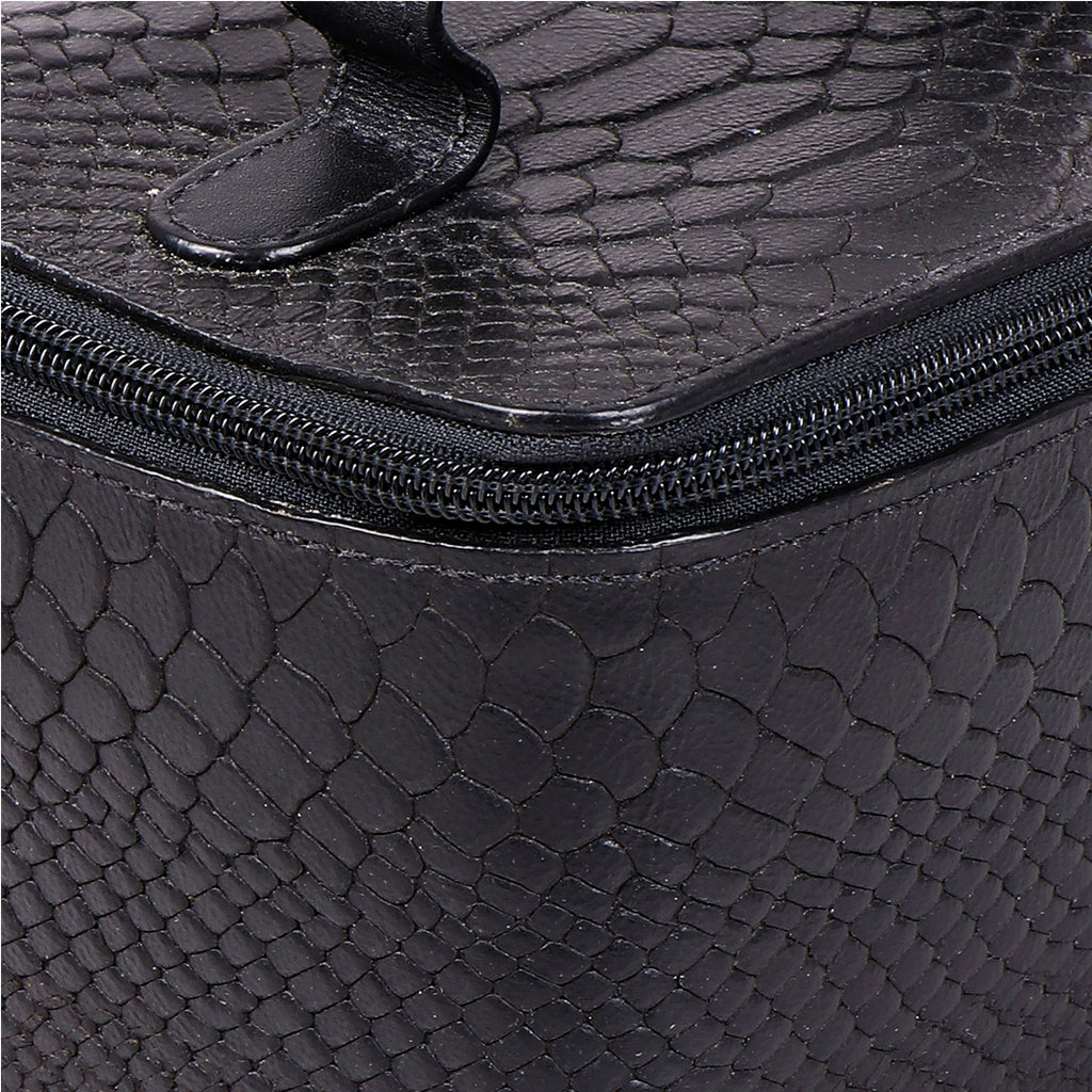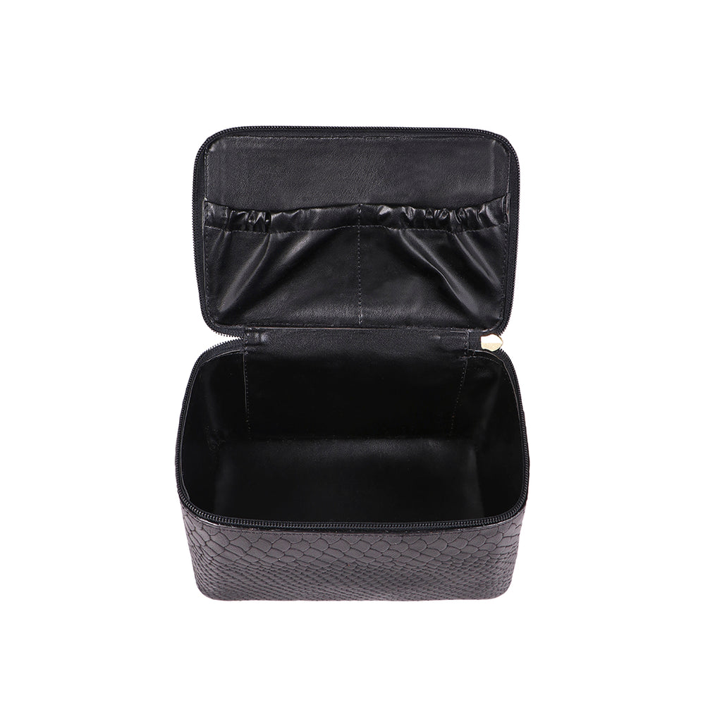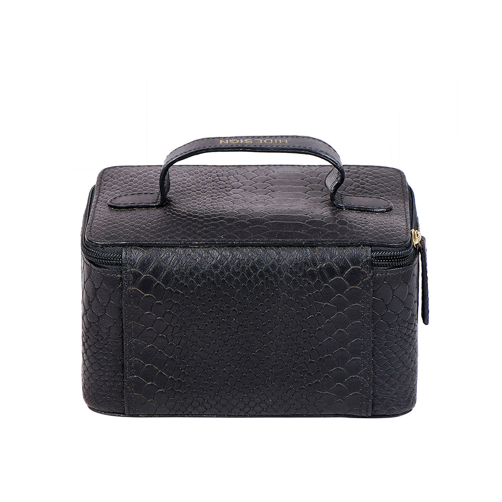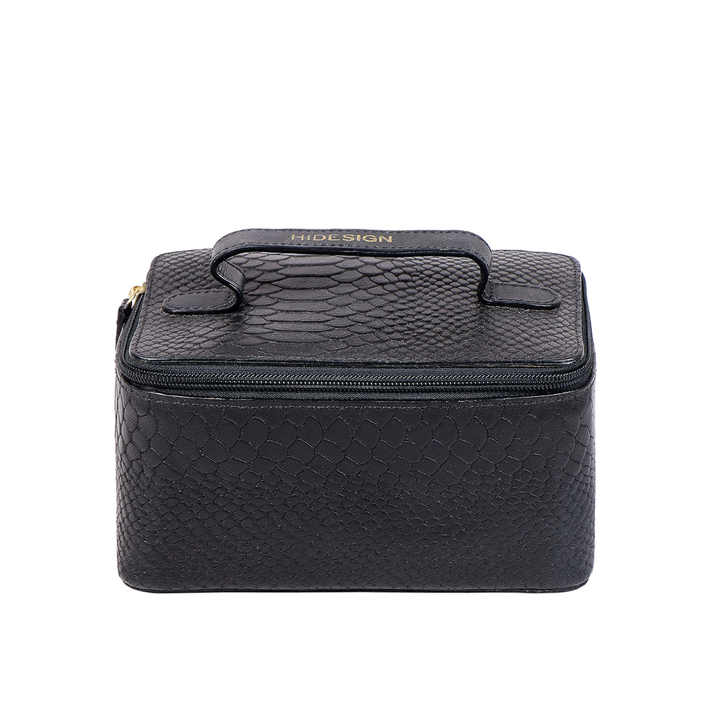 Travel stylishly with this convenient toiletry kit that can also be hung when open.