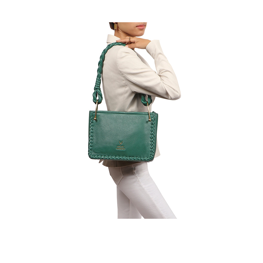 Timeless staples are must-haves for any wardrobe ! Handcrafted with superior qualty deer leather, this shoulder bag by Hidesign is accented with an attached solid brass logo detail.In addition to unique shape,the bag comes with a unique braided strap detail.So why wait ?