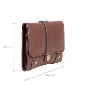 A smart ladies's tri-fold wallet with a tab closure- has classic Hidesign written all over it!