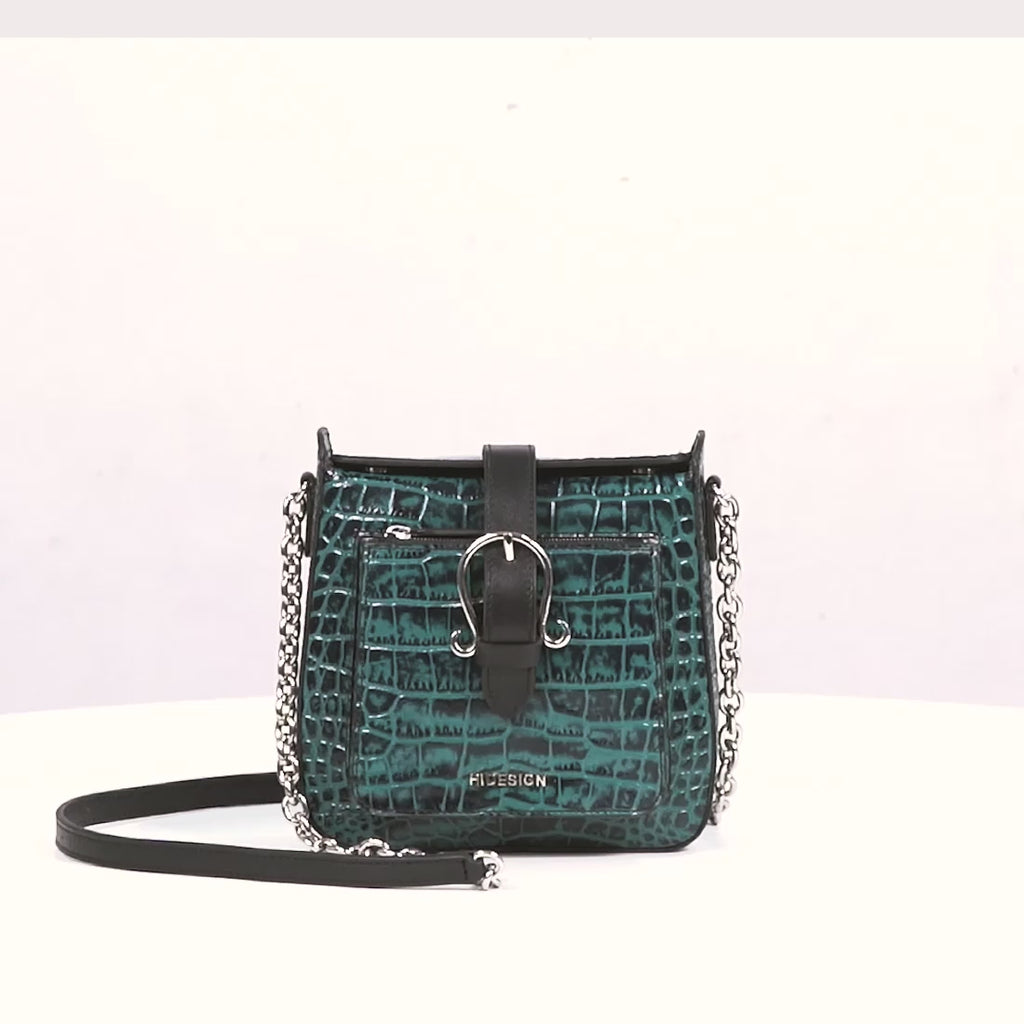 Meet Lizzo, your statement evening essential. Lizzo is a sleek shoulder sling crafted in glossy patent croco, designed to bring bold character to every night out. Its smartly organised interior with pockets keeps your essentials neatly in place and easy to reach. The dual-strap design, a chain paired with a padded leather strap, offers comfort through long evenings, while a secure leather tab with a concealed magnetic closure adds understated elegance. Finished with the iconic HDN letter fitting, Lizzo blends effortless glamour with functional design, ready for parties, celebrations, and every after-dark plan.