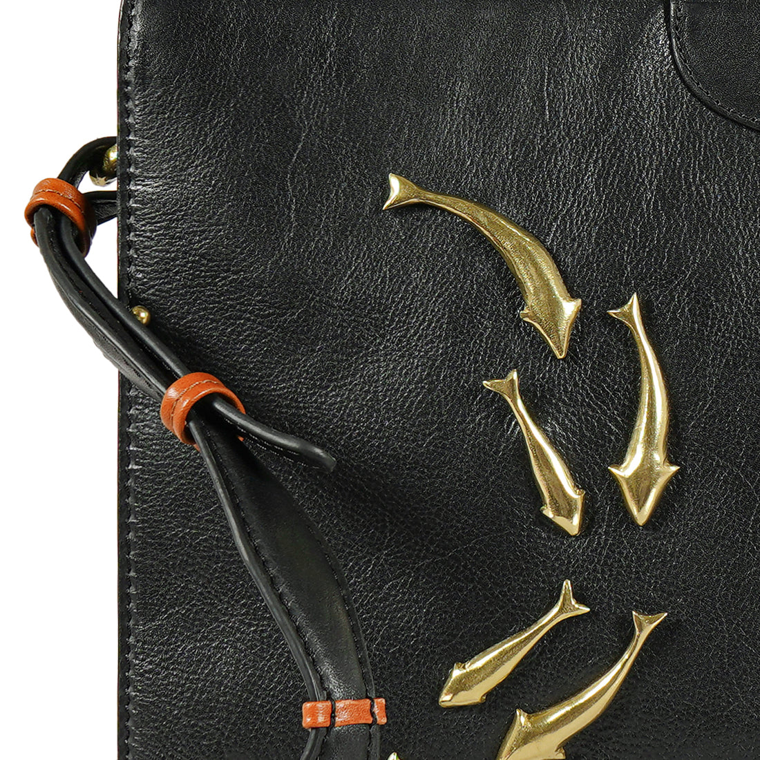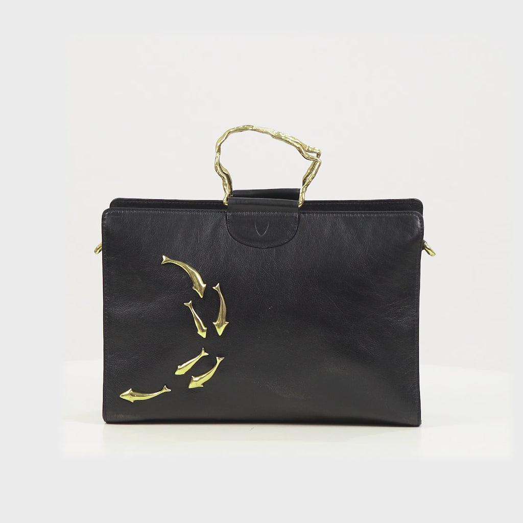 Meet Parrot 02, a briefcase bag from Hidesign's Art In Our Lives collection. Handcrafted with real vegetable tanned leather and sandcasted brass fittings, this bag is truly a work of art. Its sculpted brass handles and intricately arranged brass fish fittings create a collector's item. It also designed with a fish shaped slip pocket at the back and can accommodate a laptop of up to 15 inches. If you have an eye for art, this piece is made just for you—every detail tells a story worth admiring!