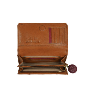 Meet Parrot W1, a bi-fold wallet from Hidesign's Art In Our Lives collection. This wallet is handcrafted from genuine vegetable tanned leather, the signature marca punto stitch and features sandcasted brass fittings, that create an artistic composition. The contrasting puller introduces a vibrant pop of colour, enhancing its visual appeal. With two spacious compartments, multiple slip pockets, card slots, and a convenient back pocket, it brings together style and functionality.