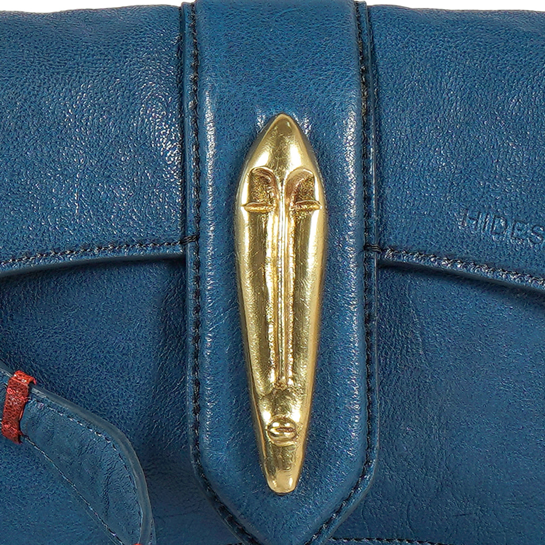 If art speaks to your soul, let Pharaoh 02 from Hidesign's Art In Our Lives collection be your perfect muse. Handcrafted from genuine vegetable tanned leather, the signature marca punto stitch and sandcasted brass fittings, this shoulder bag is anything but ordinary. Featuring a bold mask fitting and a contrast trim detail on the strap, it exudes character and an artistic charm.