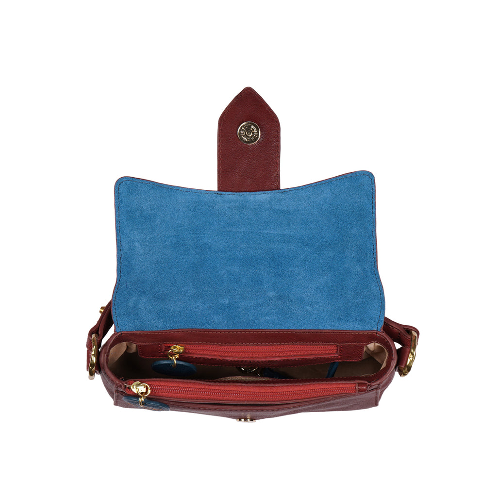 If art speaks to your soul, let Pharaoh 02 from Hidesign's Art In Our Lives collection be your perfect muse. Handcrafted from genuine vegetable tanned leather, the signature marca punto stitch and sandcasted brass fittings, this shoulder bag is anything but ordinary. Featuring a bold mask fitting and a contrast trim detail on the strap, it exudes character and an artistic charm.