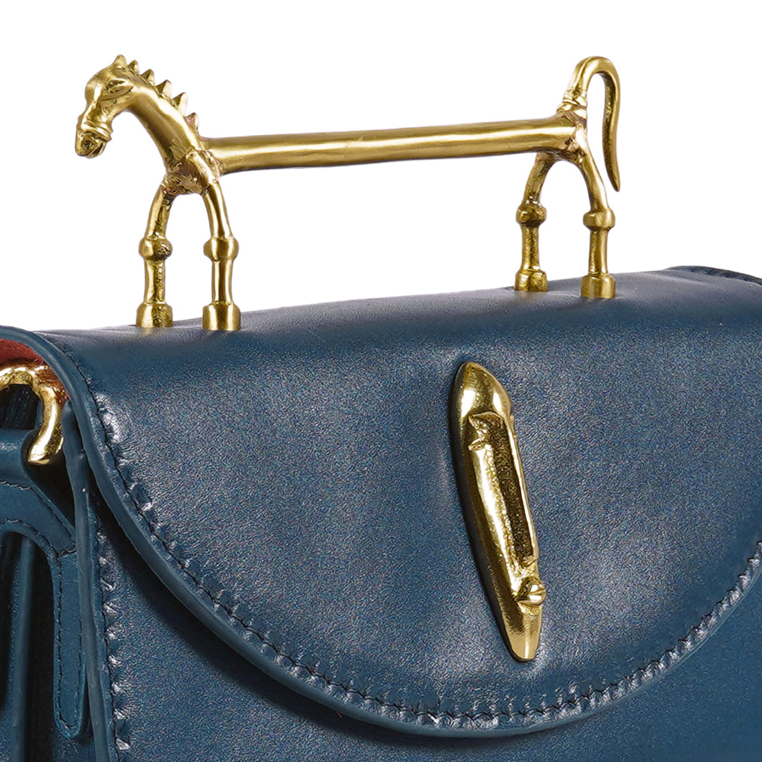 If art speaks to your soul, let Pharaoh 03 from Hidesign's Art In Our Lives collection be your perfect muse. Handcrafted from genuine vegetable tanned leather, the signature marca punto stitch and sandcasted brass fittings, this sling bag is anything but ordinary. Featuring a bold mask fitting and an antique-inspired sandcasted brass horse top handle it exudes character and an artistic charm.