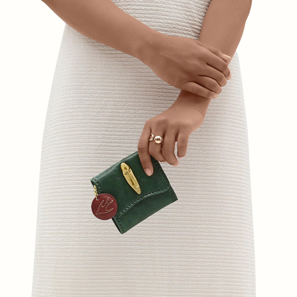 This wallet is anything but ordinary. If art speaks to your soul, let Pharaoh W1 from Hidesign's Art In Our Lives collection be your perfect muse. Handcrafted from real vegetable tanned leather, the signature marca punto stitch and sandcasted brass fittings, it features a bold mask fitting and a contrasting colour puller. Designed for both style and function, it offers one main compartment, two slip pockets, and six card slots to keep your essentials organized.