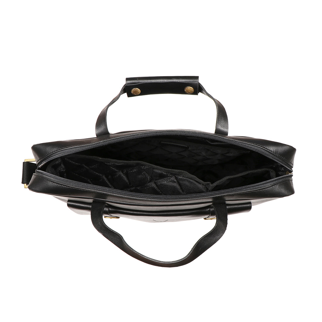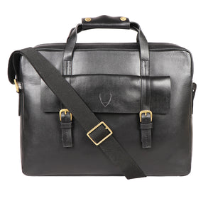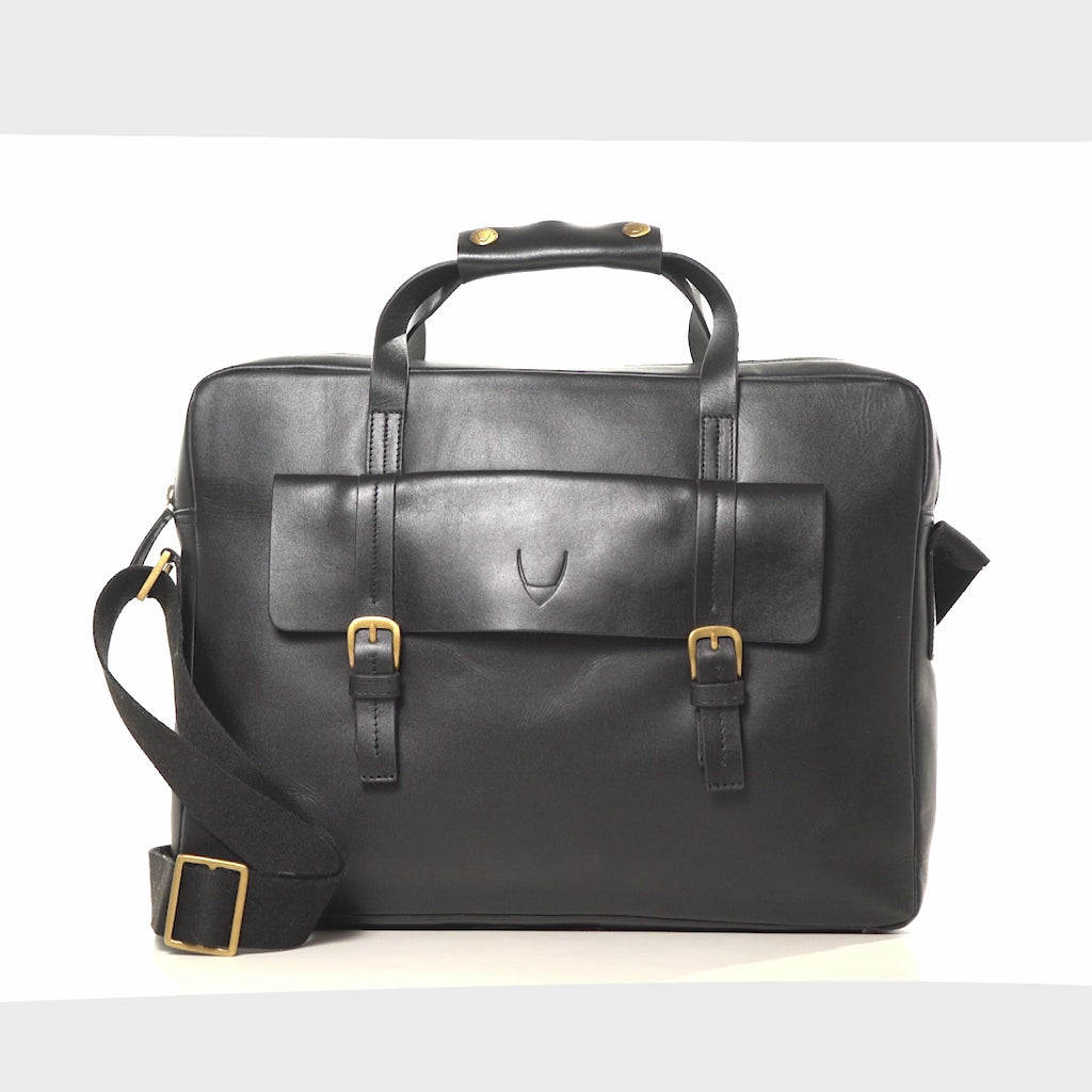 Ronaldo is a classic top handle briefcase bag by Hidesign handcrafted in vegetable tanned leather. It comes with an adjustable shoulder strap and can also be worn as a cross body bag. Elegant details of solid brass hardware buckles, front pocket and embossed brand logo makes it ideal for daily use.