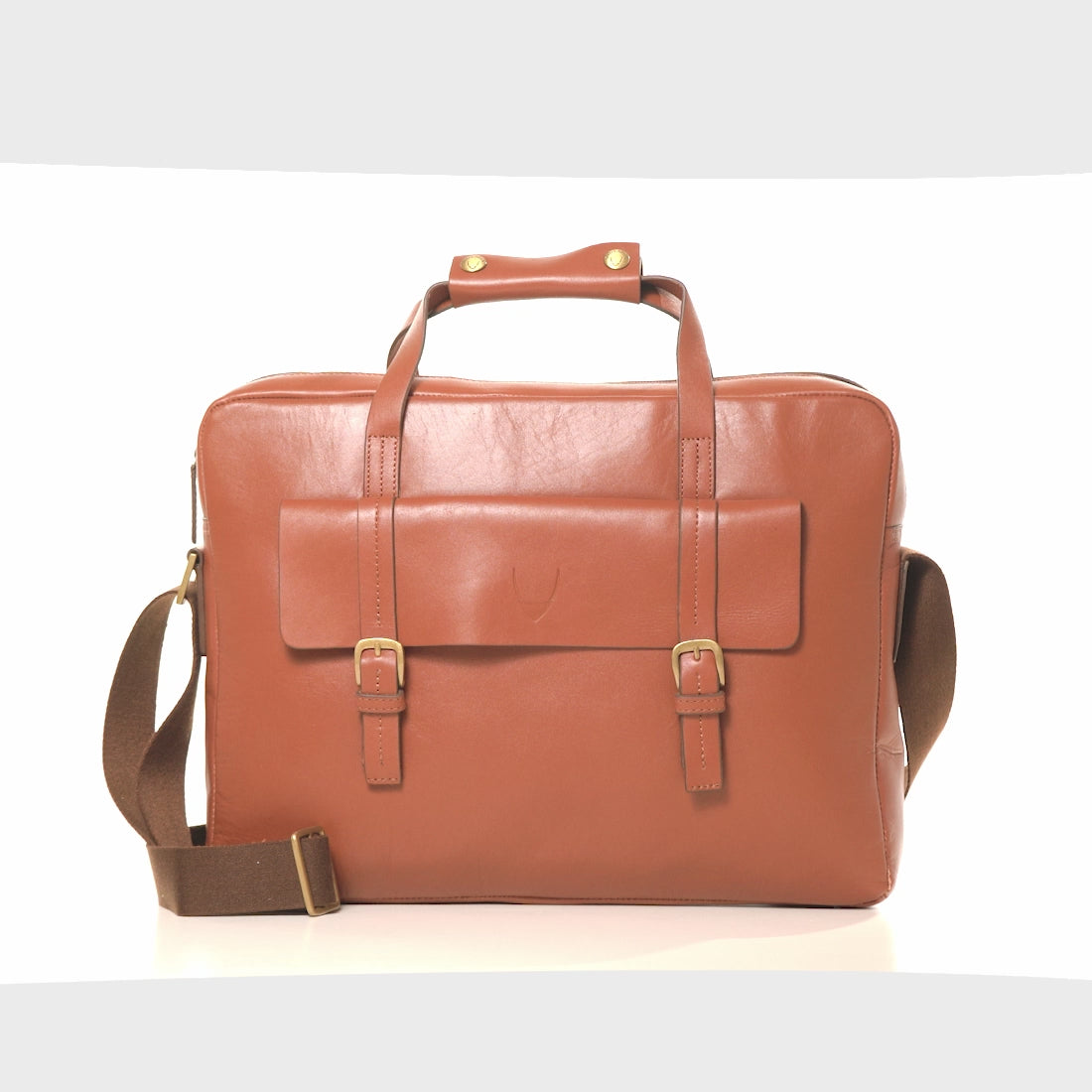 Ronaldo is a classic top handle briefcase bag by Hidesign handcrafted in vegetable tanned leather. It comes with an adjustable shoulder strap and can also be worn as a cross body bag. Elegant details of solid brass hardware buckles, front pocket and embossed brand logo makes it ideal for daily use.