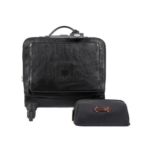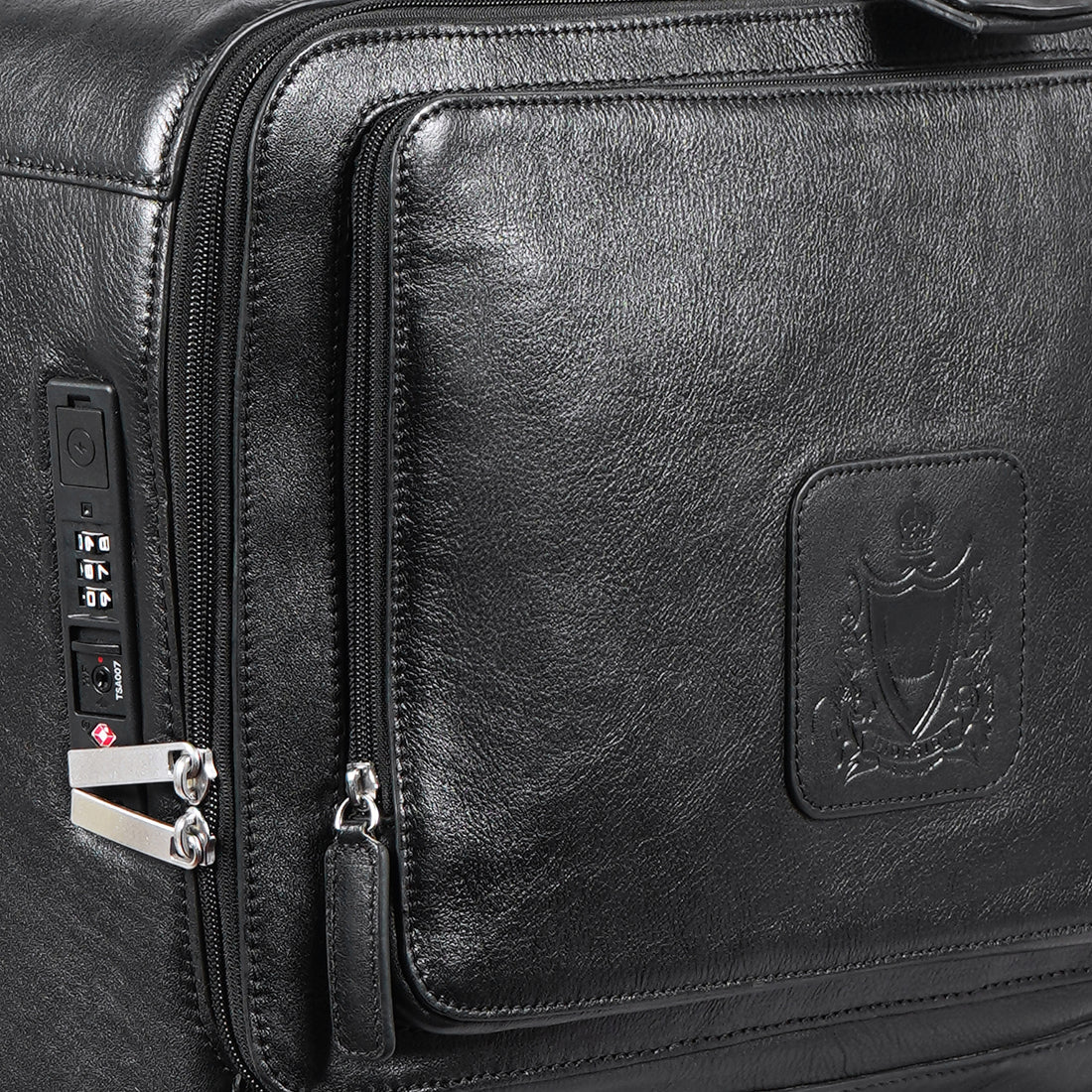 From airports to hotels, Rover 01, a trolley bag from Hidesign's On The Road collection, keeps you organized and looking sharp. Handcrafted from genuine vegetable-tanned leather, this bag features a TSA-approved number lock, along with USB and USB-C ports for easy charging on the go. Now you can charge your phone anywhere, anytime. It's also compatible with laptops up to 15 inches, making it the perfect travel buddy.