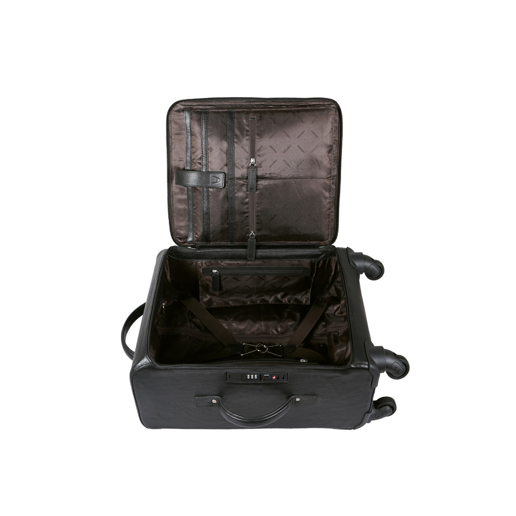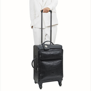From airports to hotels, Rover 02, a trolley bag from Hidesign's On The Road collection, keeps you organized and looking sharp. Handcrafted from genuine vegetable-tanned leather, this bag features a TSA-approved number lock, along with USB and USB-C ports for easy charging on the go. Now you can charge your phone anywhere, anytime. It's also compatible with laptops up to 15 inches, making it the perfect travel buddy.