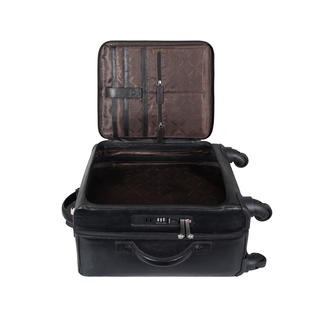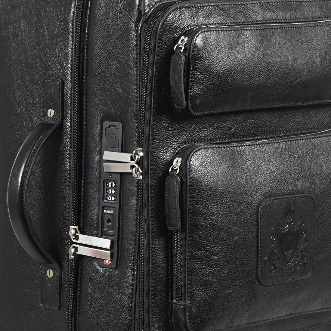 From airports to hotels, Rover 03, a trolley bag from Hidesign's On The Road collection, keeps you organized and looking sharp. Handcrafted from genuine vegetable-tanned leather, this bag features a TSA-approved number lock, along with USB and USB-C ports for easy charging on the go. Now you can charge your phone anywhere, anytime. It's also compatible with laptops up to 15 inches, making it the perfect travel buddy.