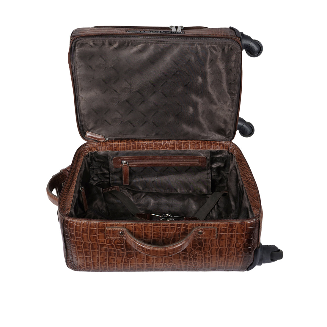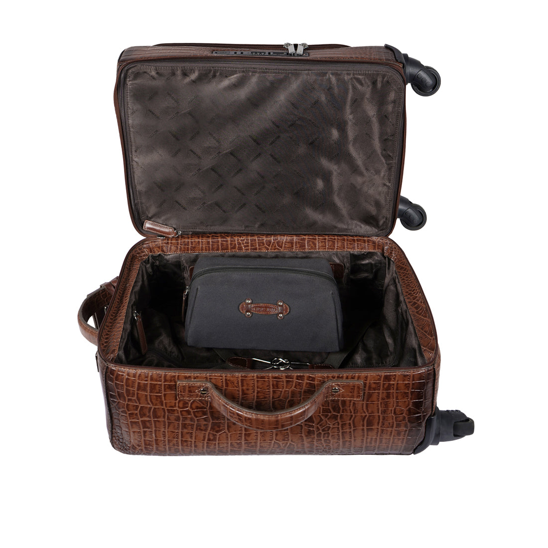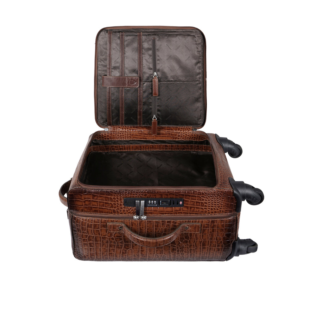From airports to hotels, Rover 03, a trolley bag from Hidesign's On The Road collection, keeps you organized and looking sharp. Handcrafted from genuine vegetable-tanned leather, this bag features a TSA-approved number lock, along with USB and USB-C ports for easy charging on the go. Now you can charge your phone anywhere, anytime. It's also compatible with laptops up to 15 inches, making it the perfect travel buddy.
