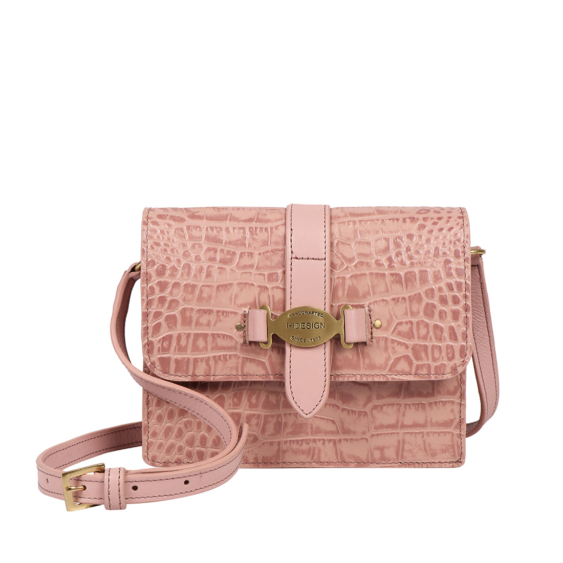 Equipped with sophisticated exteriors and spacious compartments our Santiago 02 is handcrafted using finest vegetable tanned leather. The croco textured sling bag comes with brass detailings and can be teamed up with every wardrobe.