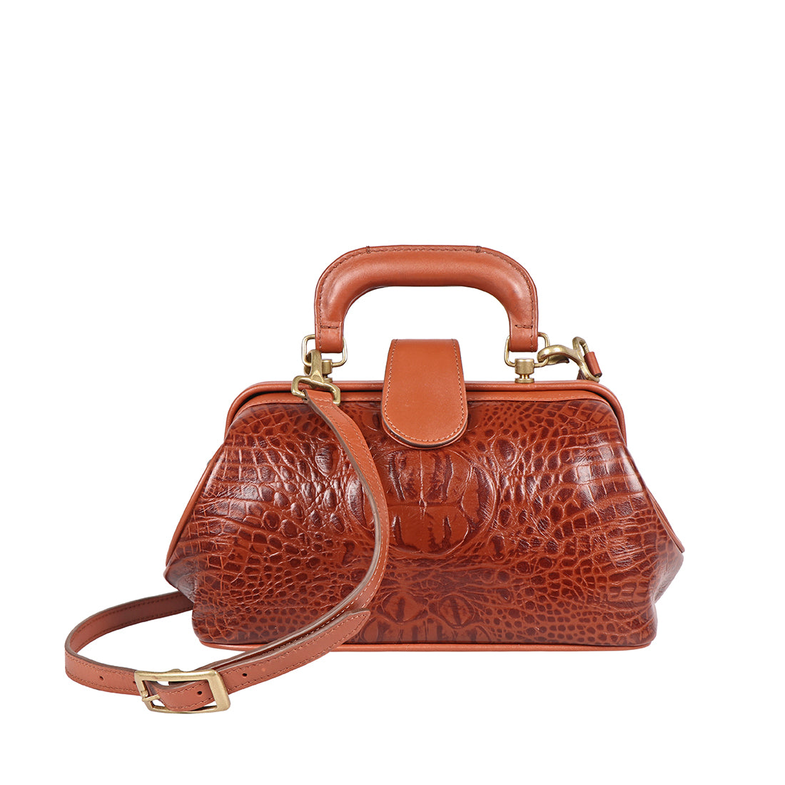 Carry with you the 1983 elegant and small doctor bag made with baby croco Leather. The bag with its stylish handles and brass fittings is ideal to make a fashion statement.