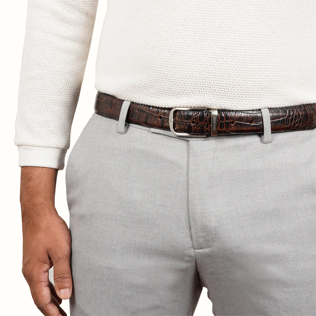 Hidesign brings you a handcrafted leather belt with a neat buckle and fine finishing that will perfectly pair up with whatever you choose to wear; be it casual wear or a formal attire.