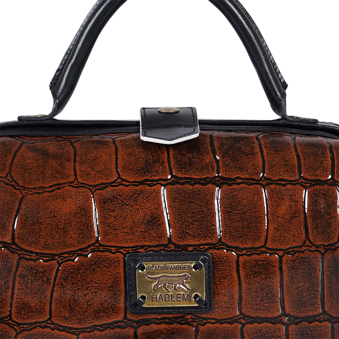 Harlem - the center for all things art, music, racial pride, and a beacon of Black culture. Inspired by this same energy, Hidesign presents Tina Turner 01, handcrafted in our new vegetable tanned Sicily leather. This unique crocodile-printed leather, with its bold, vibrant scales and rich undertones, offers a subtle yet glamorous appeal. The bag has got just the right edge featuring metal chains with leather weaving and sandcasted brass details, including a brass plate etched with a panther and brass rivets. Designed to fit all your essentials, it’s the perfect companion for your wallet, pocket mirror, and lipstick.